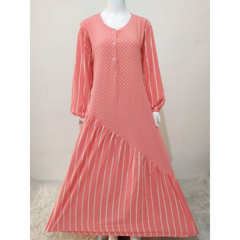 Distributor Fashion M di Kabupaten Banjar Siap Kirim Homedress Busui Aura Karun Rayon Batik Cap Ori Ziyan / Gamis Rayon Motif Salur Polka Dot dari Mukena_murah Kab. Bogor