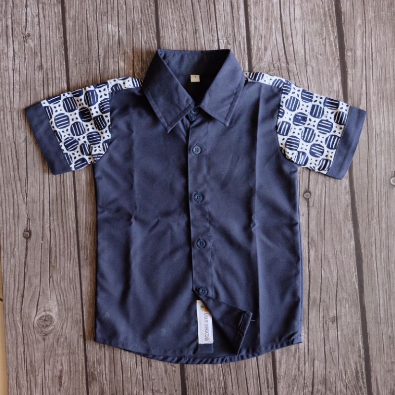 Terlaris Fashion Bayi & di Kabupaten Penajam Paser Utara Nabhas Shirt (kemeja Anak Dark Navy Blue Kombinasi Batik) dari Little Beescout Kota Jakarta Barat